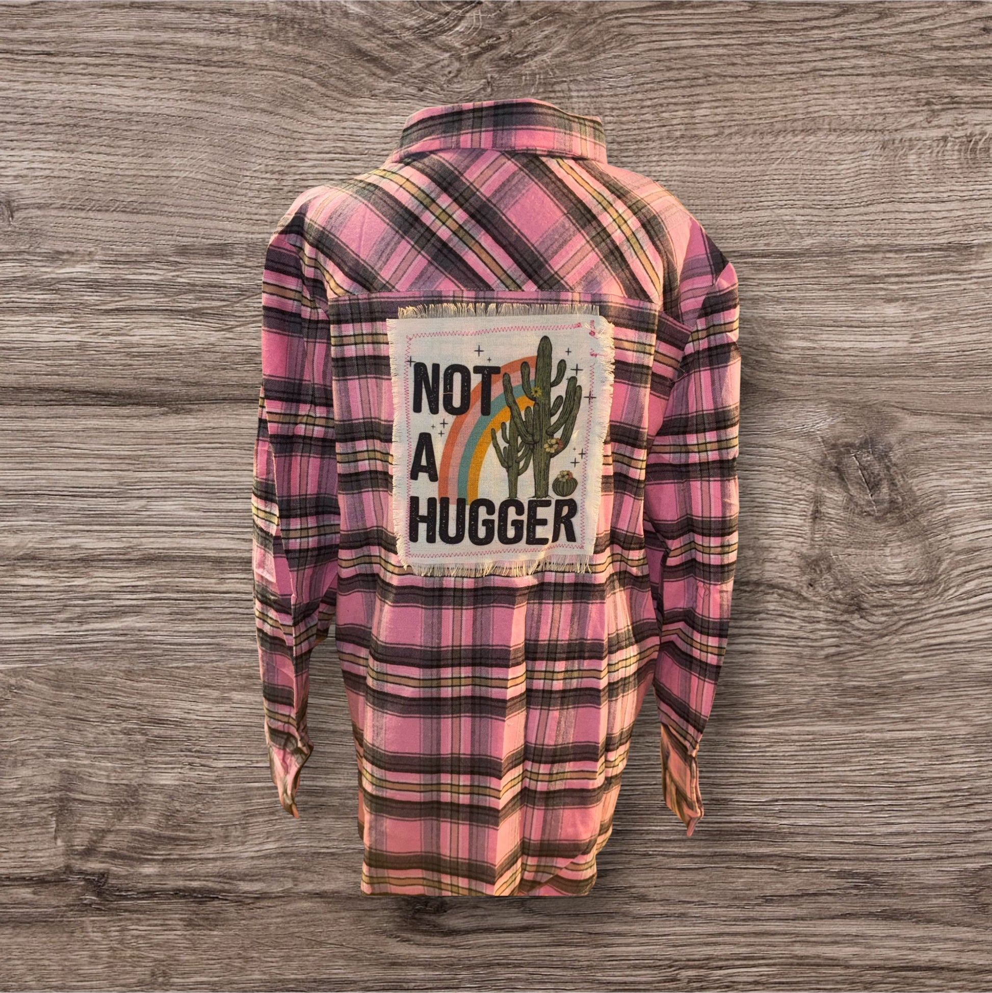 🌵 “Not a Hugger” Pink Plaid Flannel